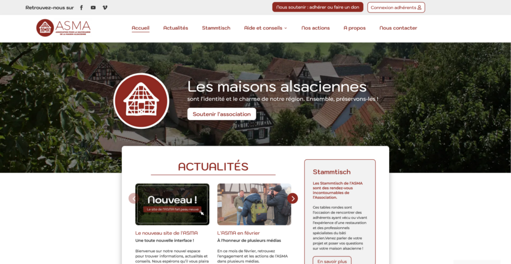 L’Association pour la Sauvegarde de la Maison Alsacienne (ASMA) créée en 1972 est comptant à ce jour plus de 1100 adhérent.e.s, est un acteur essentiel de la préservation et de la valorisation du bâti ancien en Alsace.